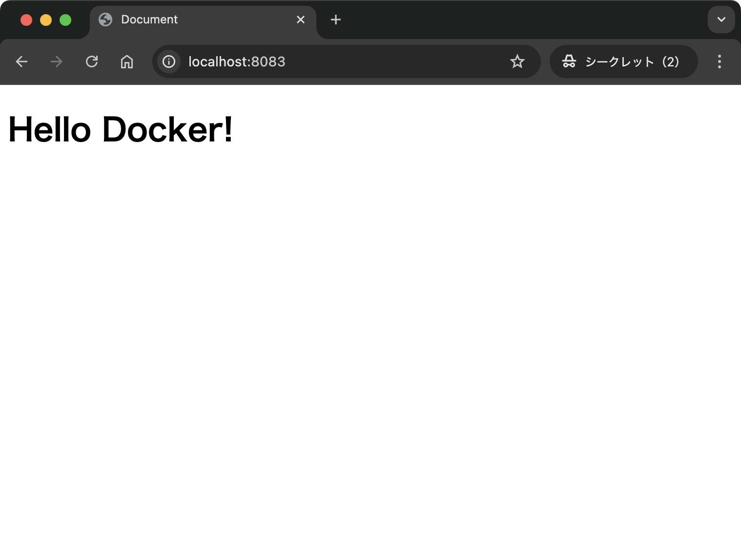 とし,ローカル環境の 8083 番ポートをコンテナの 80 番ポートに接続しています.