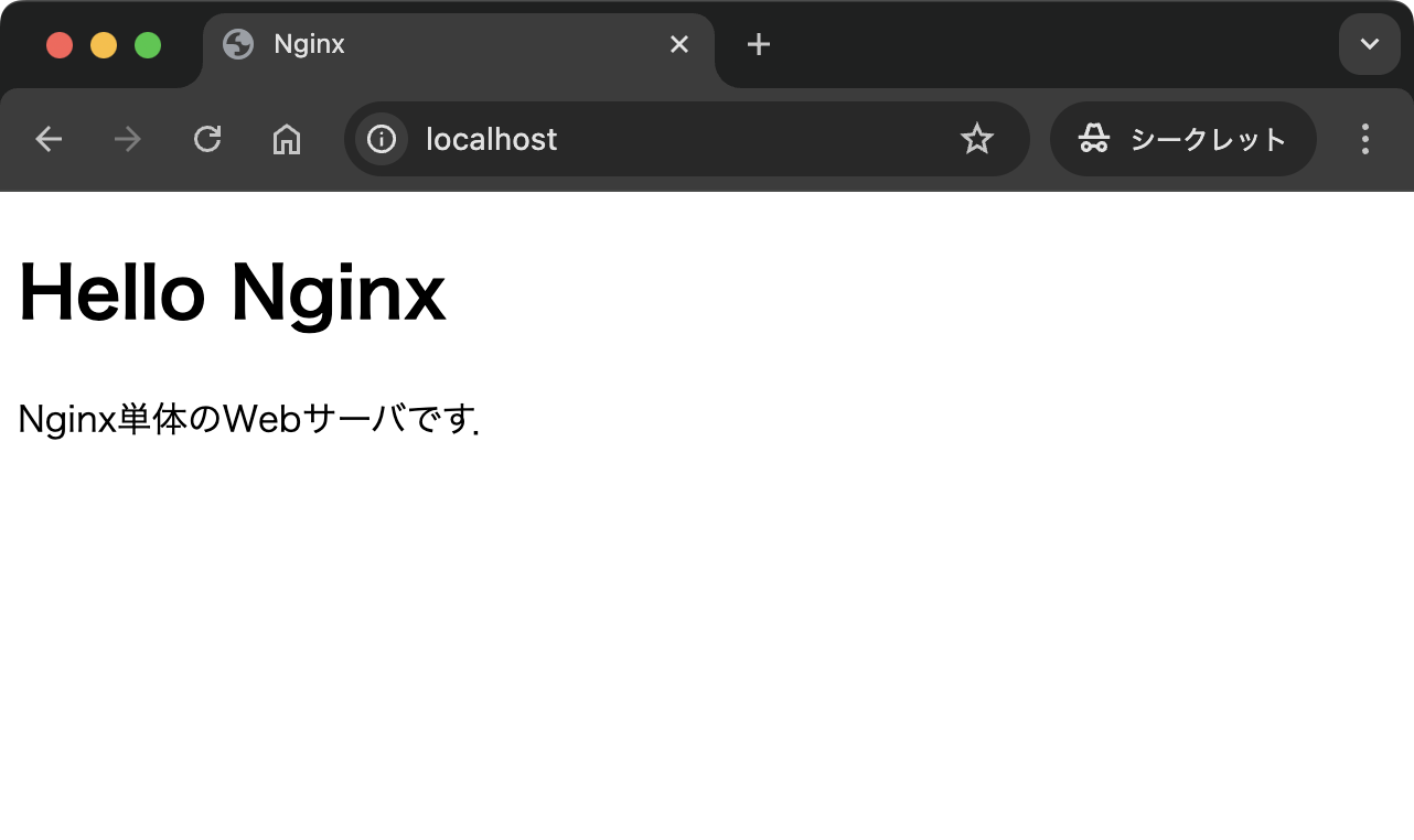 このページでは,下図のような nginx 単体の Web サーバからスタートします.