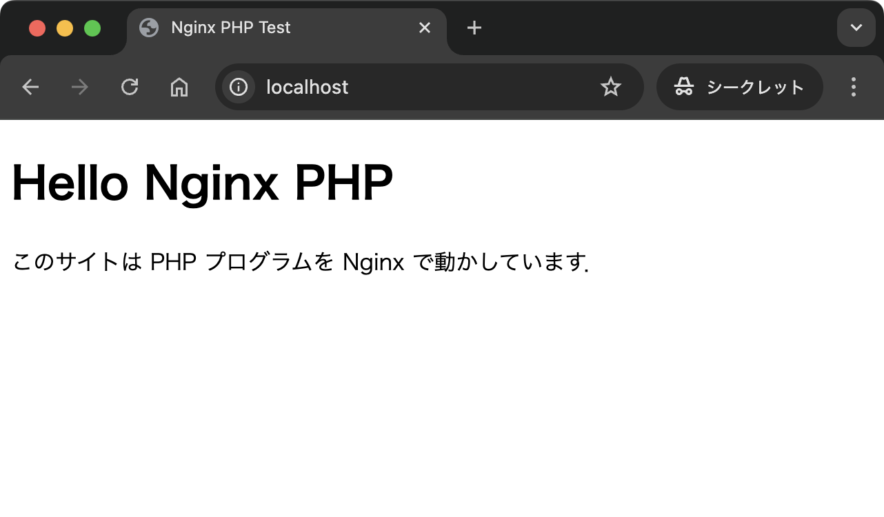 コンテナの起動が確認できたので Web ブラウザで http://localhost/ に接続します.