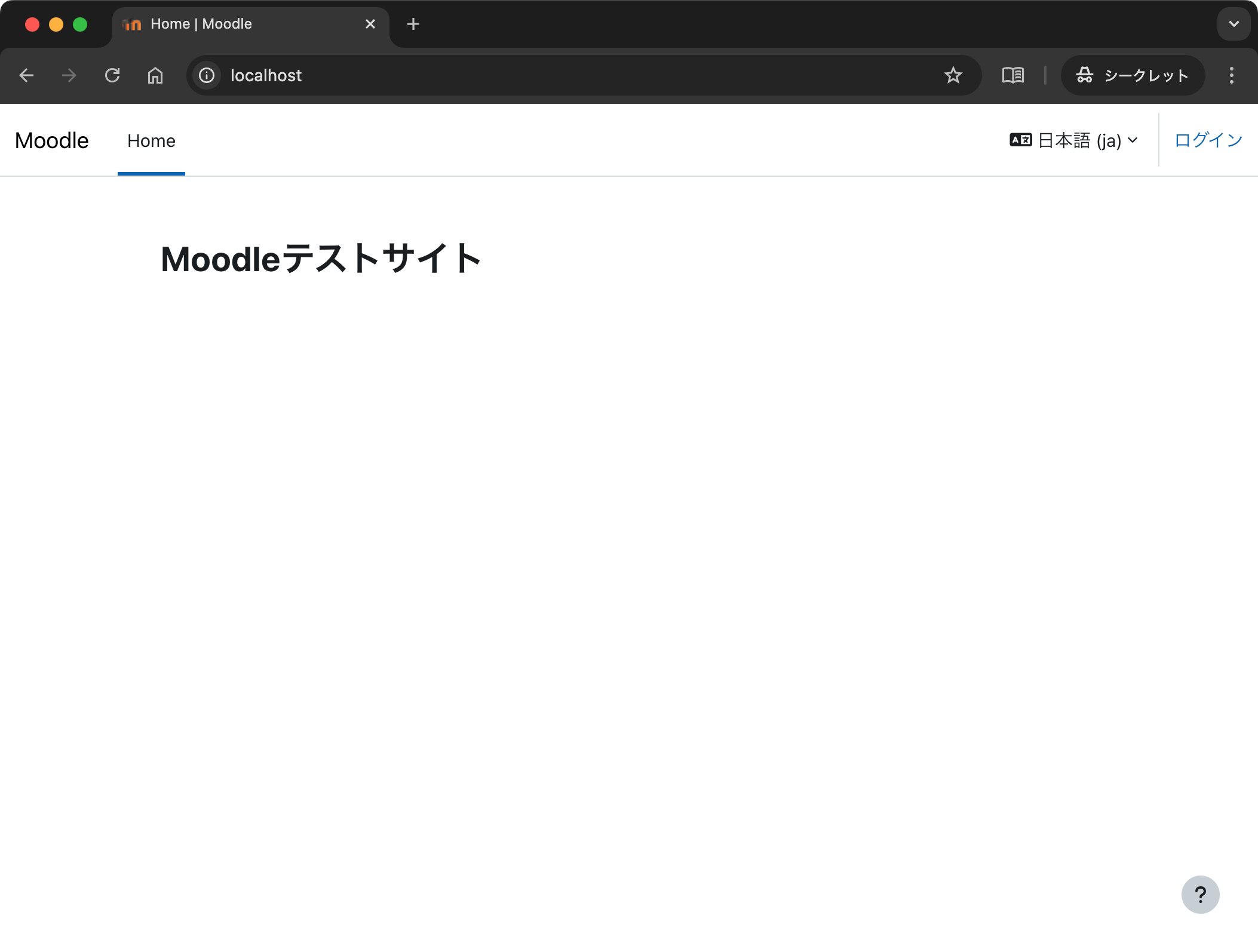Moodle の準備ができたのでトップページにアクセスします.右上にある「ログイン」リンクをクリックします.